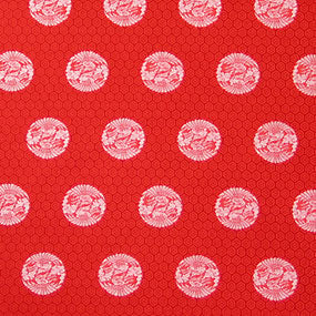 お写真は8cm角と24cm角。ポリエステル金襴赤系 有職亀甲地に雲鶴丸柄 琳派名物裂二丁 厚さ:中厚