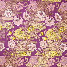 お写真は8cm角と24cm角。ポリエステル金襴紫系 唐花柄 二丁 厚さ:薄め