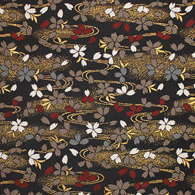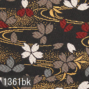 お写真は8cm角と24cm角。ポリエステル金襴黒系 流水に桜柄 三丁サビ 厚さ:中厚