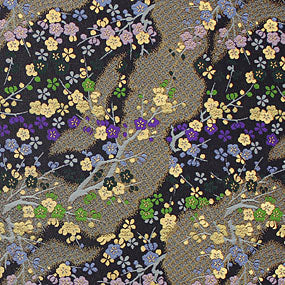 お写真は8cm角と24cm角。ポリエステル金襴黒系 道長に梅柄 厚さ:薄手