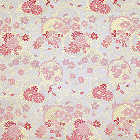 お写真は8cm角と24cm角。ポリエステル金襴ピンク系 雪輪に菊と萩 厚さ:中厚
