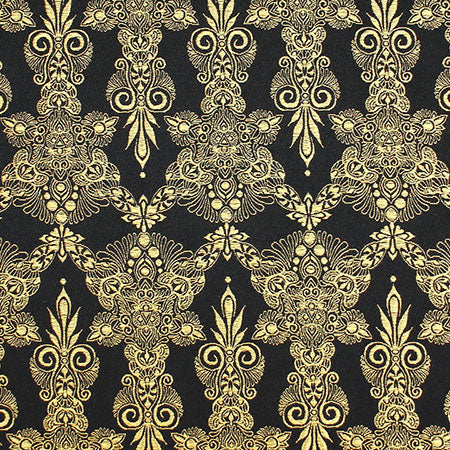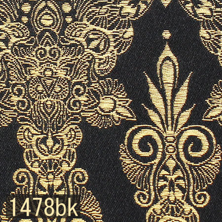 お写真は8cm角と24cm角。ポリエステル金襴 黒系 ダマスク柄 厚さ:中厚