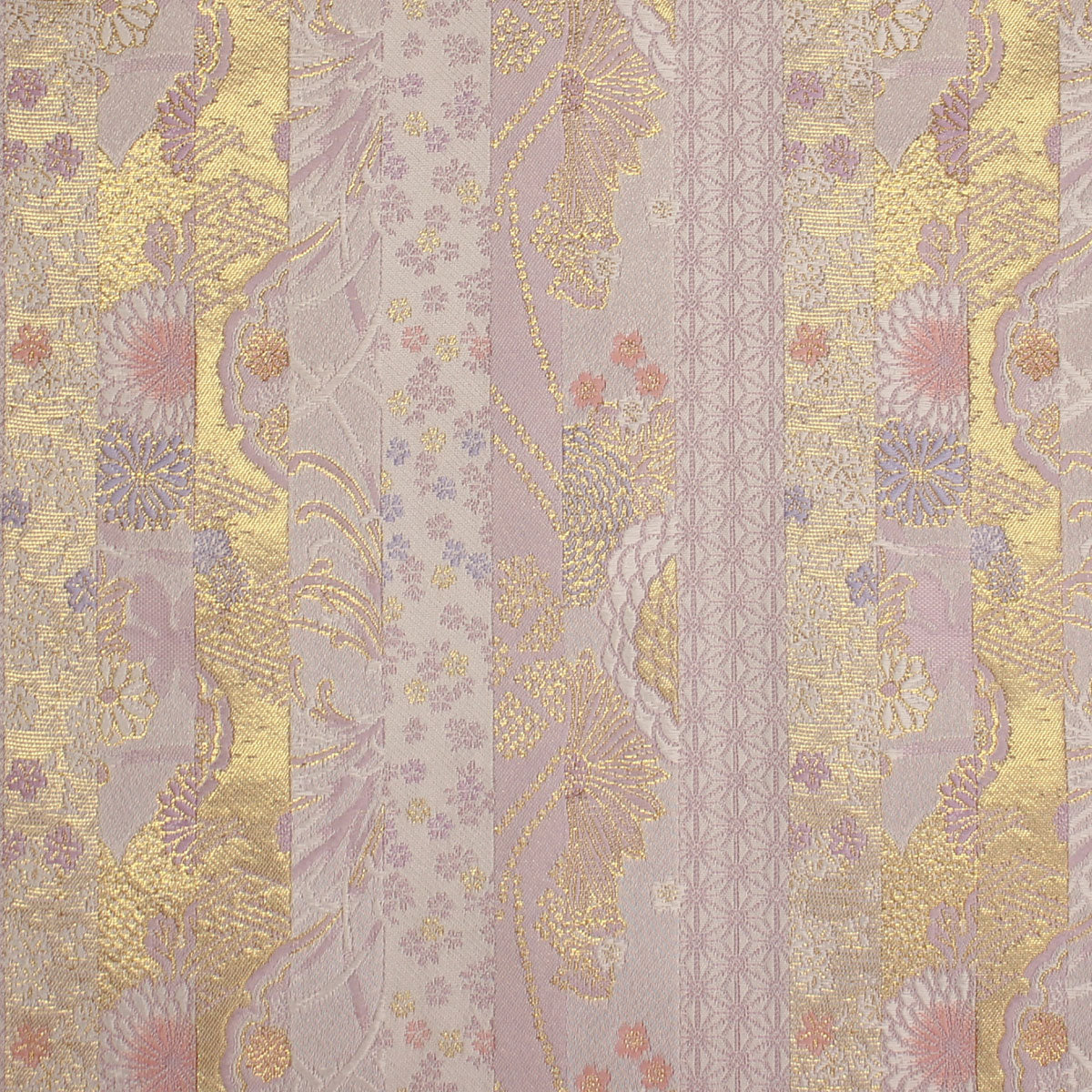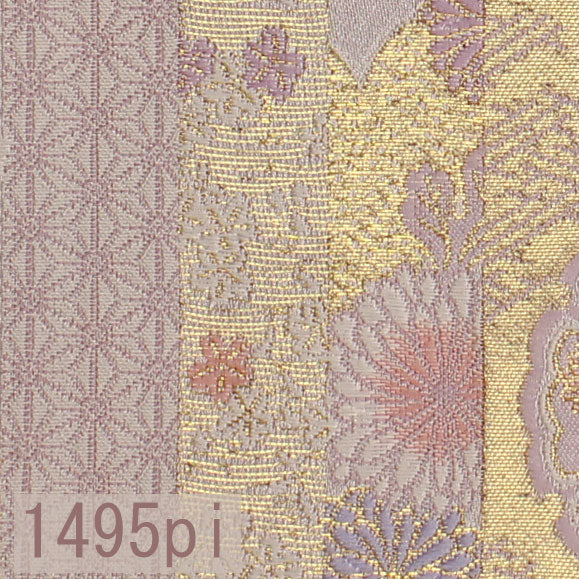 お写真は8cm角と24cm角。ポリエステル金襴 洛レイ胴入 ピンク系 菊・麻の葉他 厚さ:中厚