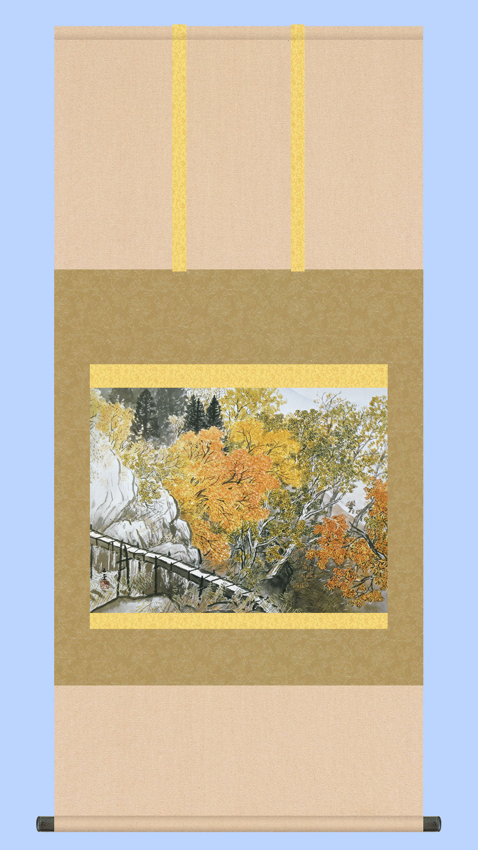 花鳥画掛け軸 樵径深秋 川合玉堂(名画複製画)