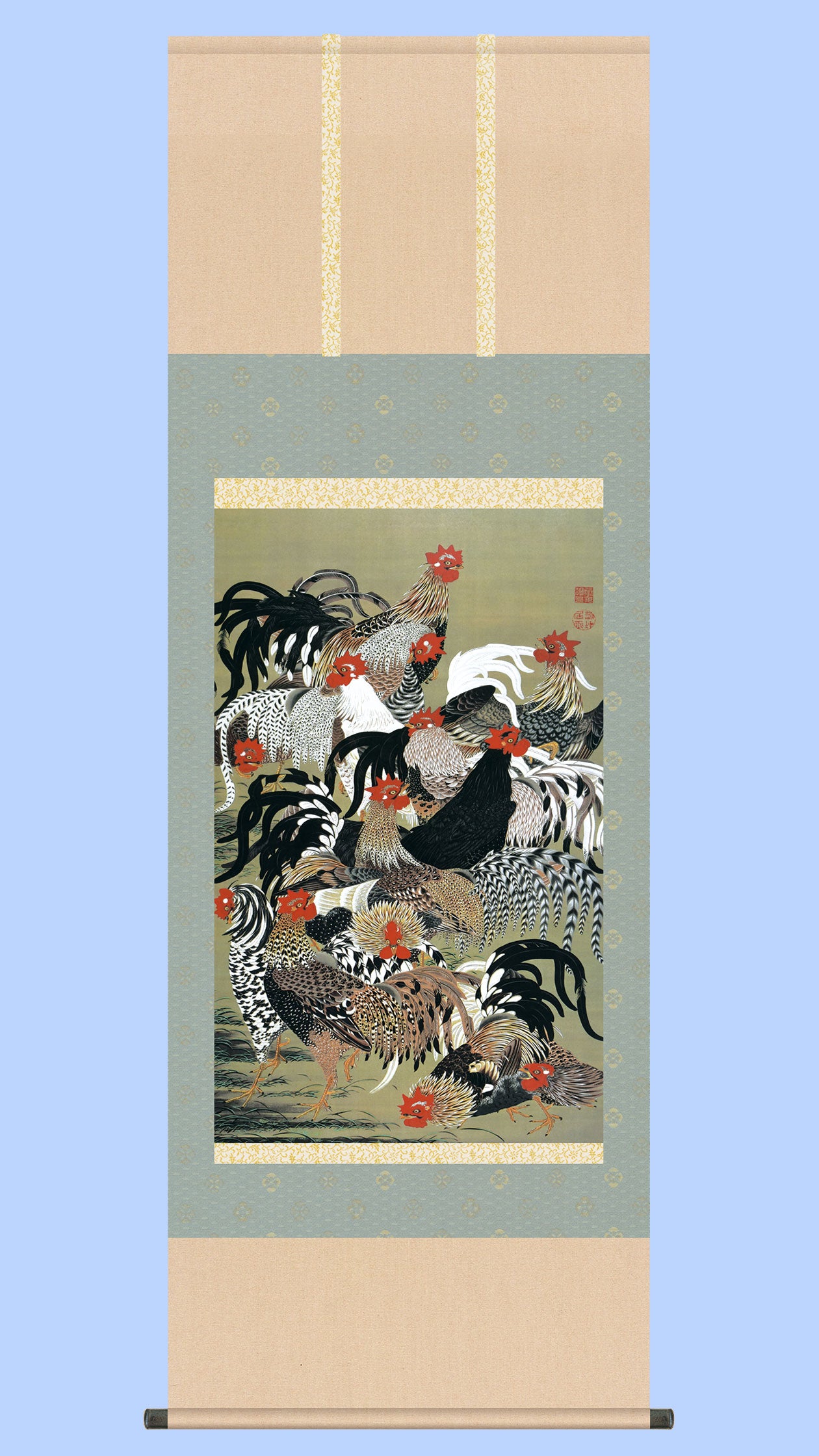 名画複製画掛け軸 群鶏図 伊藤若冲