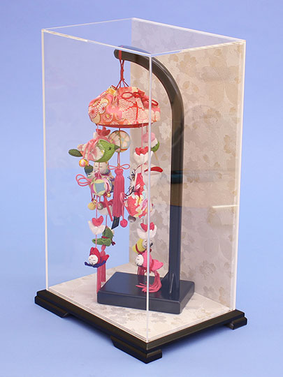 つるし雛ケース飾り 高さ30cm 極小ウサギっこゆり 白桜 アクリルケース入りの可愛いコンパクトサイズ