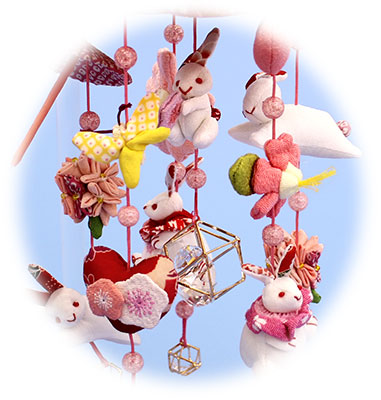 つるし雛ケース飾り 高さ33cm ウサギっこさら 白桜 アクリルケース入りの可愛いコンパクトサイズ
