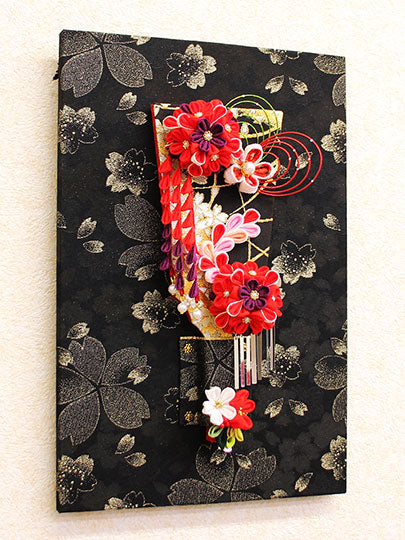 新年装饰,适合初次新年和首次节日。挂墙式布置的羽子板装饰。不含人偶柜。尺寸20x30(宽x高)。带钮扣发饰的华丽羽子板。