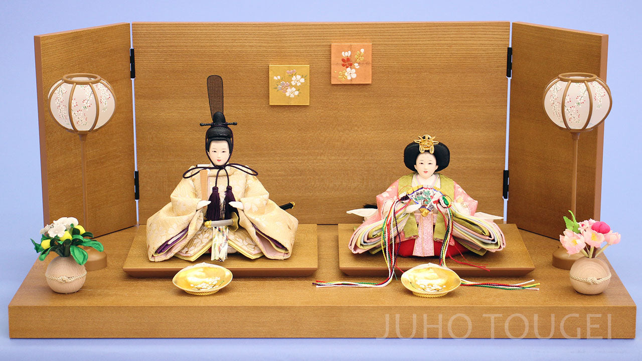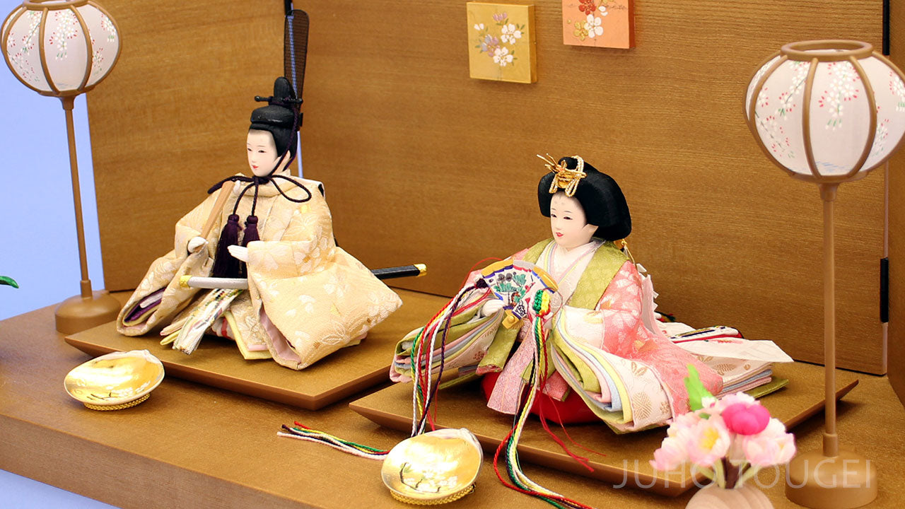 雏人偶,一对平摆。由寿房人偶陶艺监督