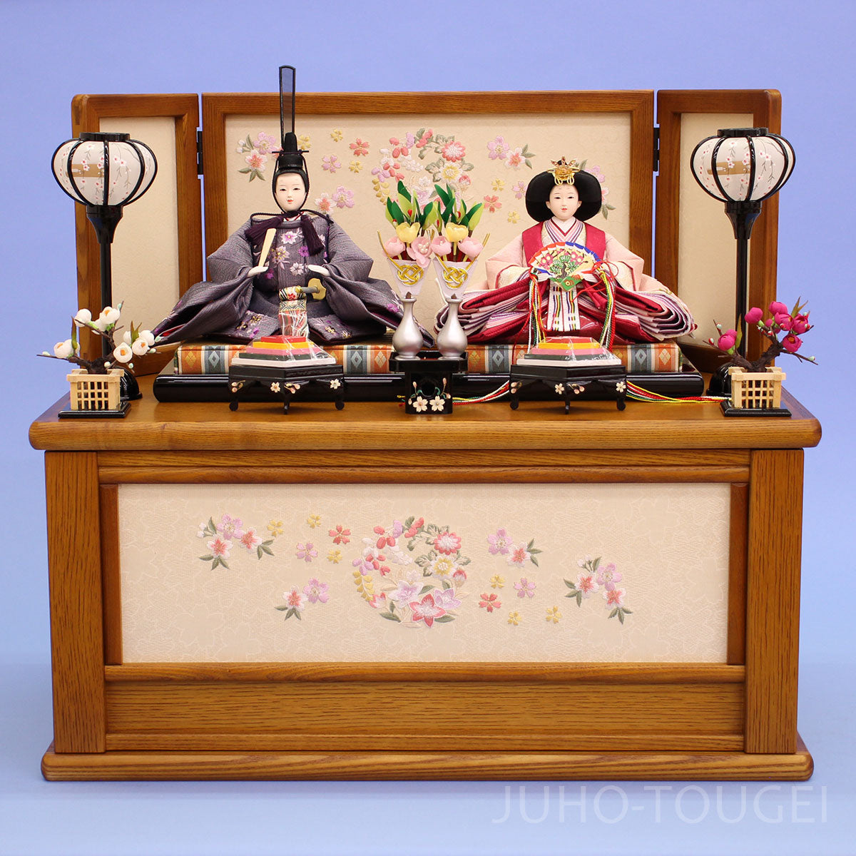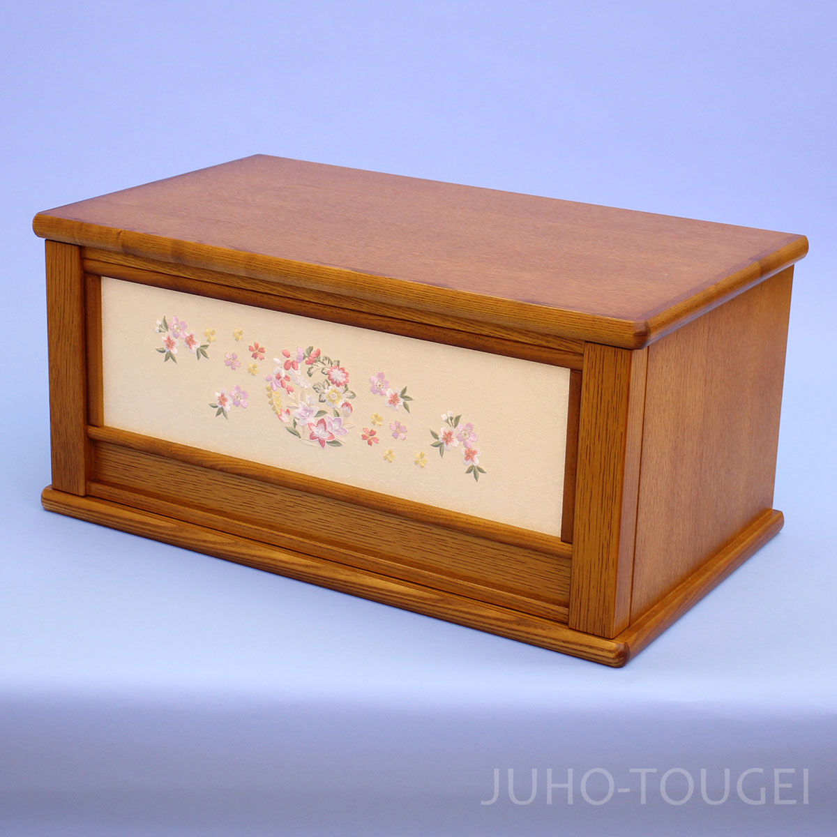 - 毎年人気のオーク、タモ材の木目を活かした木製台に刺繍が美しい引き出し式の収納飾りです