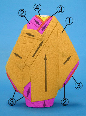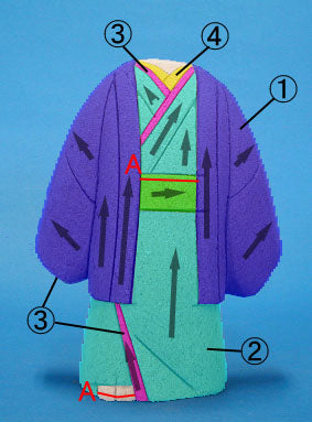 - 编号①至④是布料编号。此外,该人偶附带用于下摆、脖子和足袋的绉纱。