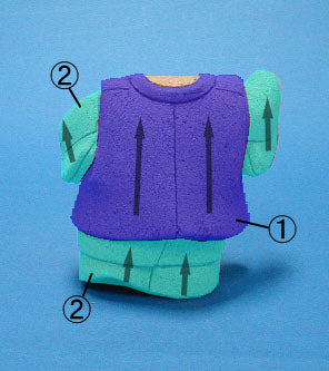 - 箭头表示粘贴布料时应朝向的方向。