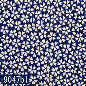 照片为8厘米见方。人造丝绉布,藏青色,樱花图案