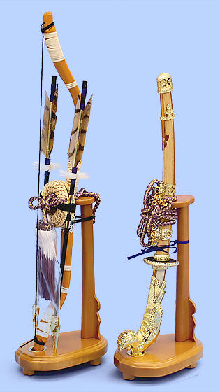 五月人偶配件,弓与剑套装单独出售,15号尺寸,土色