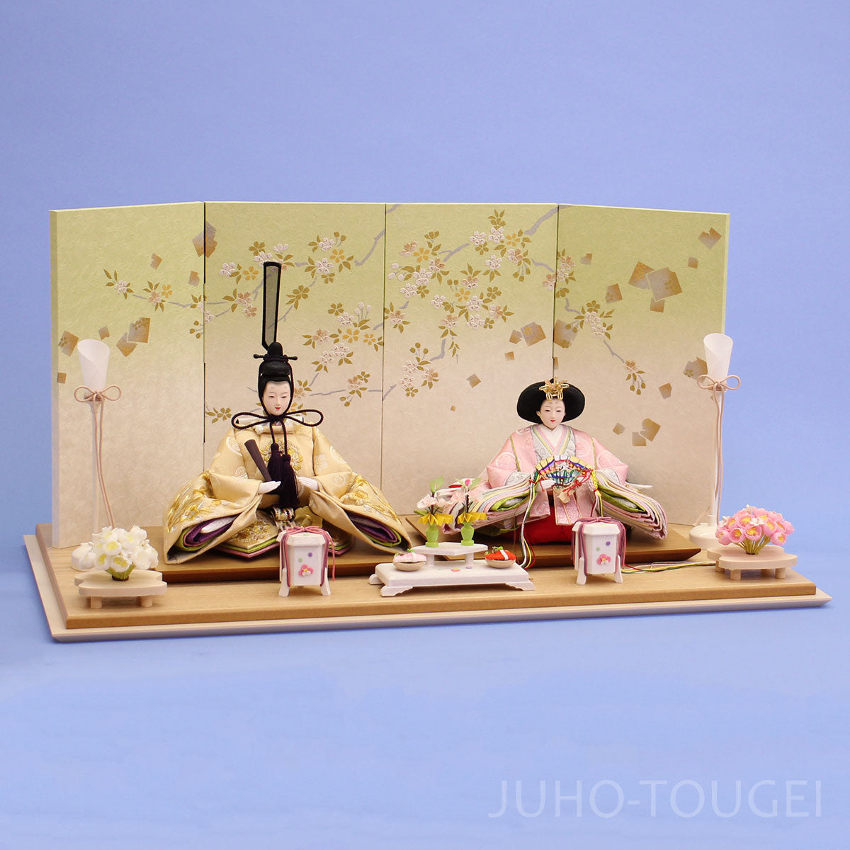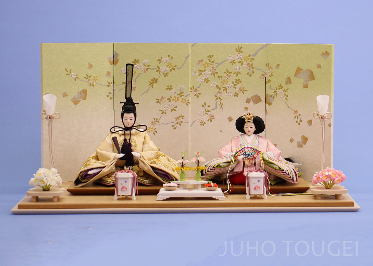 雏人形 亲王平摆 60cm宽 — 京十二番 米色粉色刺绣「Green Aozakura」|JUHO TOUGEI 监修