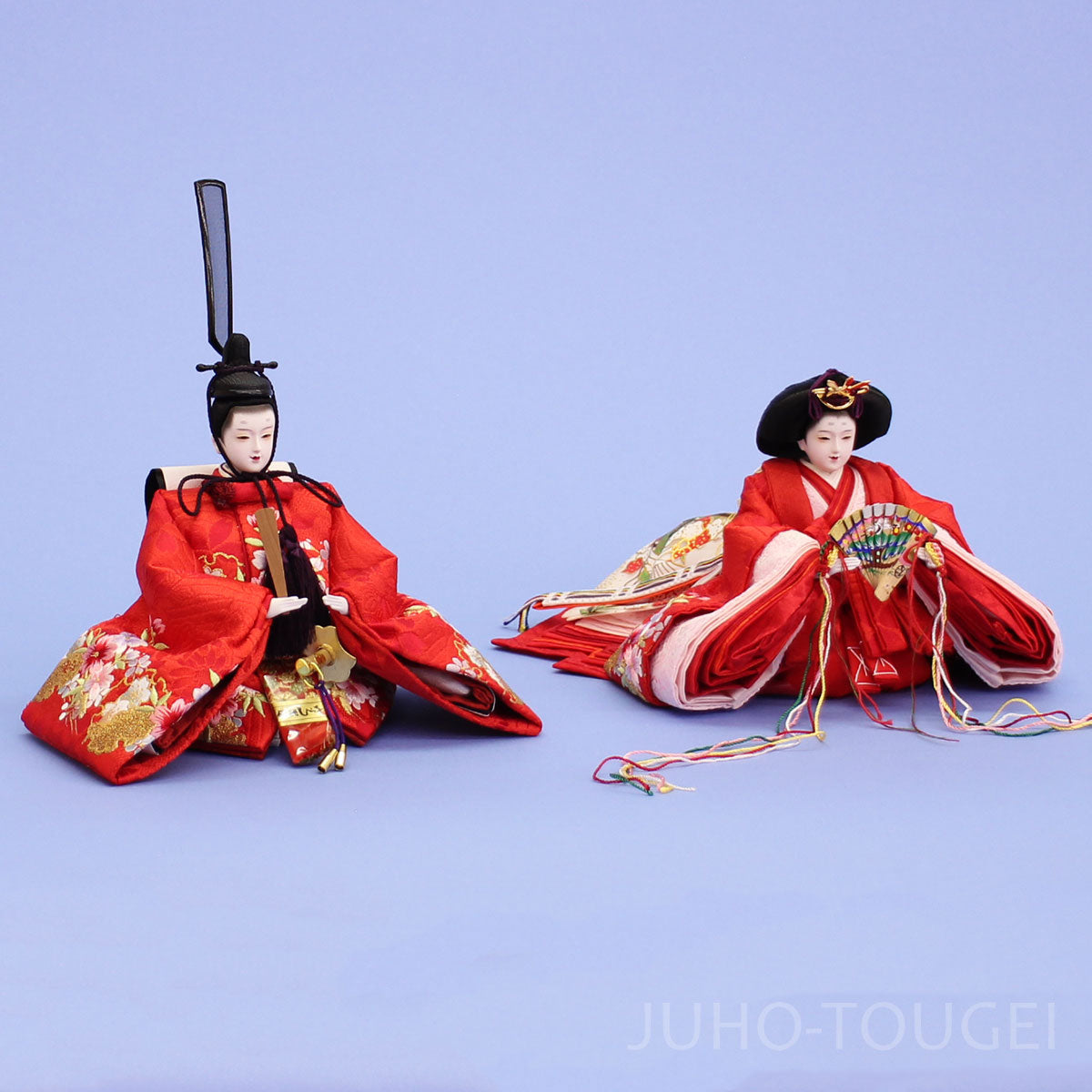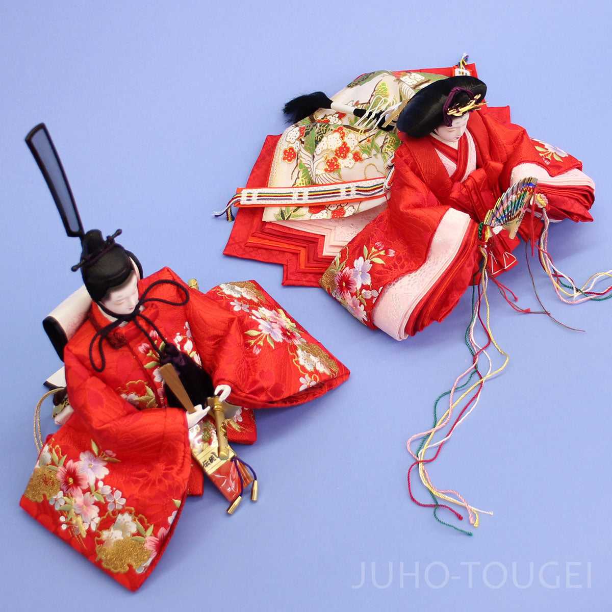 单件雏人偶 一对 5 京都第12号,精美金线刺绣,红色