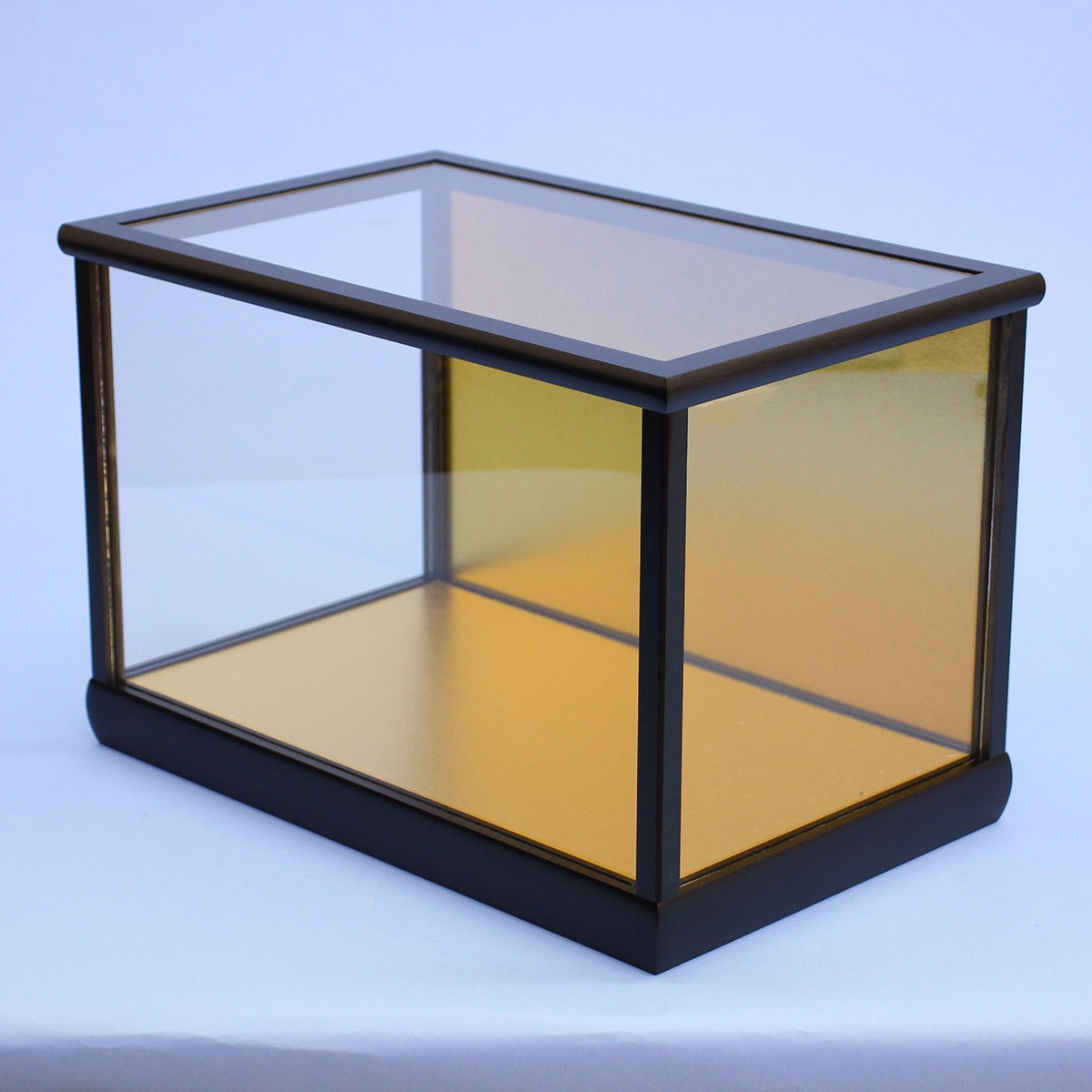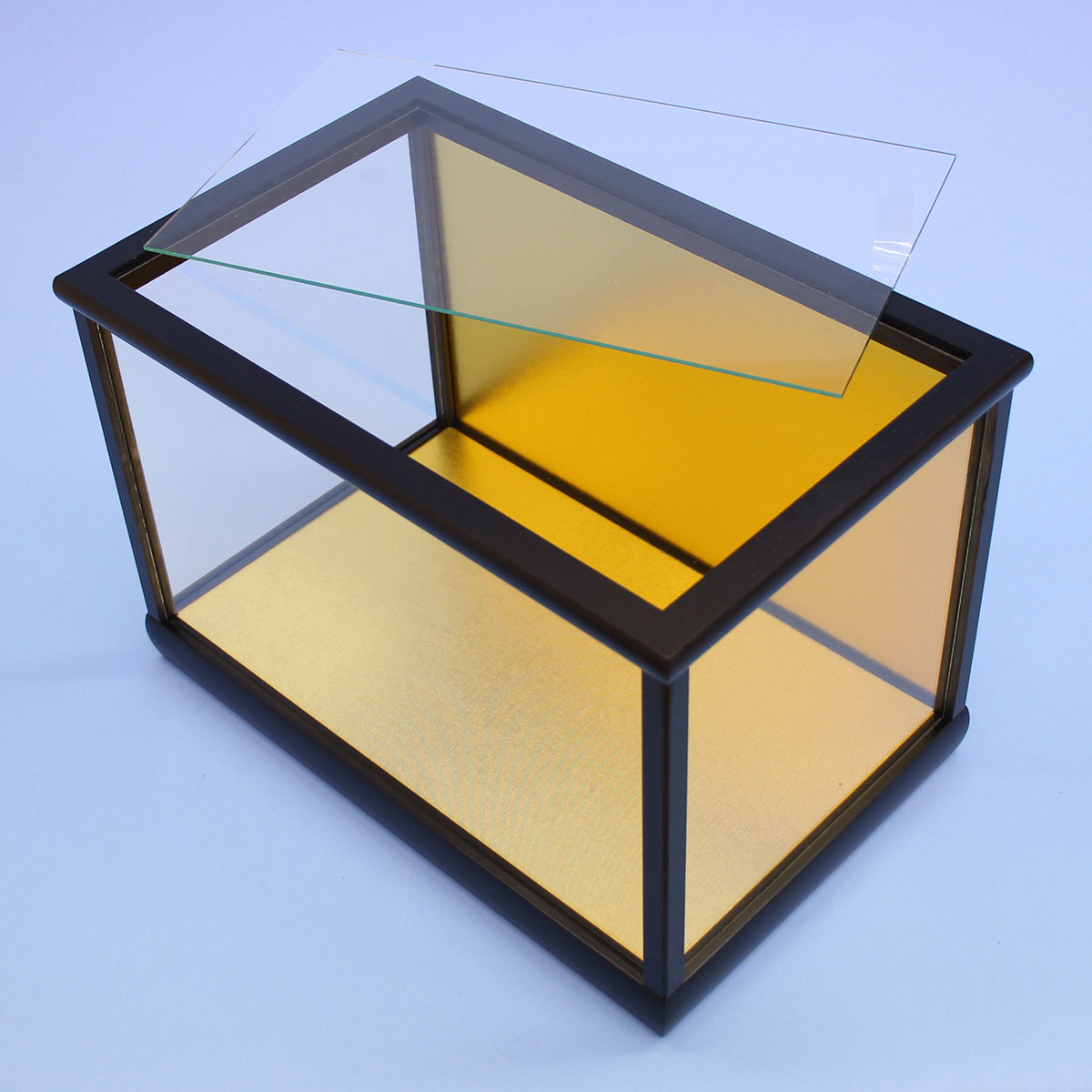 带盖的人偶展示柜,宽30厘米,高18厘米,顶玻璃,达摩型号3,黑色哑光金色背板